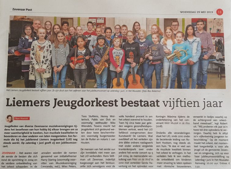 Sinds 2011 mag ik het Liemers Jeugdorkest leiden. Een orkest met een bijzondere bezetting. Elk jaar doen zij mee aan 2 tot 3 projecten. Zo hebben ze samen gespeeld met senioren, doen zij elk jaar mee met de Sinterklaasmusical en hebben ze ook al voor koningin Máxima mogen optreden. Dit jaar bestaan ze 15 jaar en wordt er nog steeds met passie gemusiceerd!